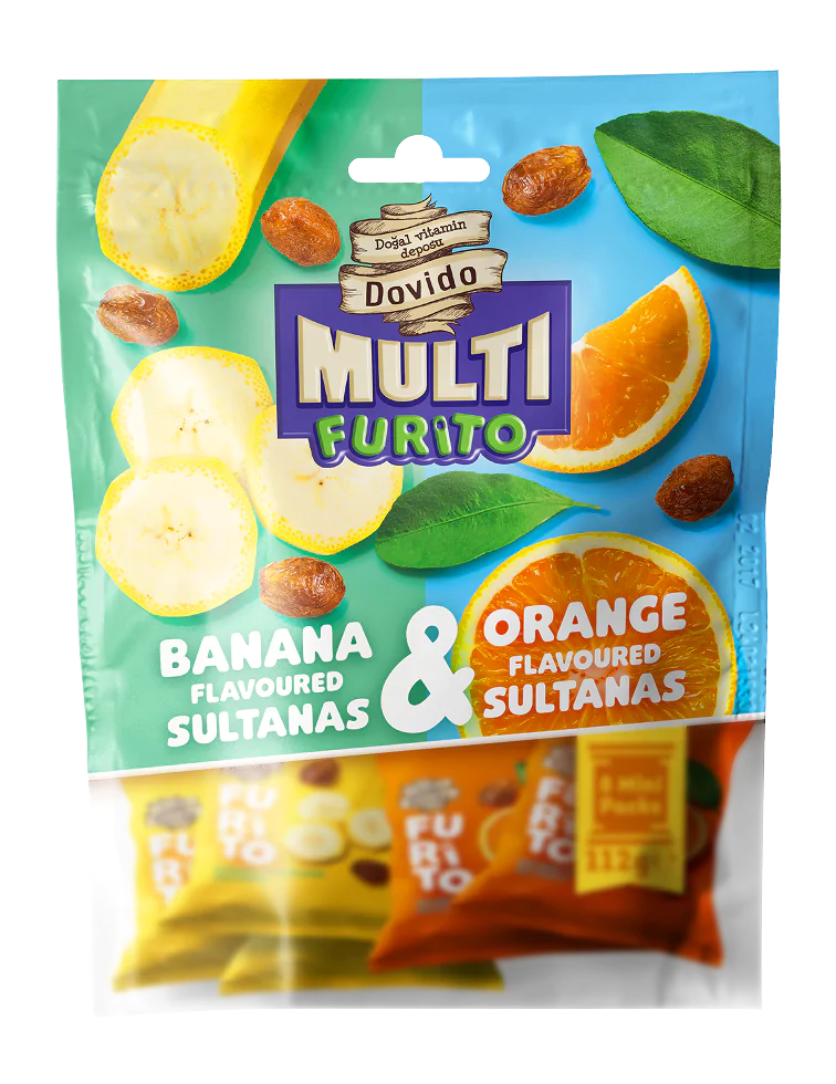 Dovido Furito Portakal & Muz Aromalı Kuru Üzüm, tropikal tazeliği ve doğal tatlılığıyla gününüze enerji katar. Portakalın ferahlatıcı aroması ile muzun yumuşak aromasını bir araya getiren bu özel karışım, hem çocuklar hem de yetişkinler için sağlıklı bir atıştırmalık sunar. Vitamin ve mineraller bakımından zengin yapısıyla günlük enerji ihtiyacını karşılar, yoğun tempoda vücuda güç verir. Katkı maddesi içermeyen yapısıyla güvenle tüketilebilir. İster okul çantasında ister işte, Multi Furito Portakal & Muz Aromalı Üzüm her an yanınızda!